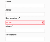 Użytkownik powinien jednak też od razu wiedzieć, jak naprawić swój problem. Warto więc unikać komunikatów, które niewiele mówią jak np. na oswietlenie-atat.pl – czerwony X jasno sugeruje, że użytkownik popełnił błąd, ale brakuje szczegółów wyjaśniających, co jest tu nie tak i co zrobić, żeby naprawić błąd. Możemy domyślać się, że chodzi o niewłaściwe formatowanie wprowadzonego kodu pocztowego, ale dobry UX nie opiera się na przeczuciach użytkownika.
