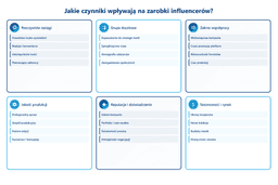 - Zarobki influencerów zależą od liczby obserwujących, poziomu zaangażowania, jakości treści, specjalizacji tematycznej i renomy w branży. Liczy się również profesjonalizm, spójność wizerunku oraz zdolność do budowania trwałych relacji z markami i odbiorcami. Im większe zaufanie, tym wyższe stawki.