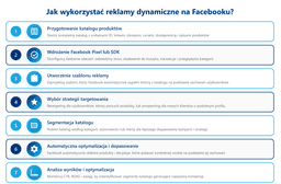 - Wykorzystanie reklamy dynamicznej na Facebooku polega na połączeniu katalogu produktów z aktywnością użytkowników monitorowaną przez Pixel. Kampanie można kierować na osoby zainteresowane konkretnymi produktami (retargeting) lub nowe grupy odbiorców o podobnych zachowaniach (prospecting), automatyzując treść reklam.