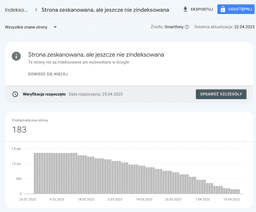 Jeśli masz taką sytuacje jak powyżej, to możesz mieć pewność, że liczba adresów URL, która znajduje się w raporcie Strona zeskanowana, ale jeszcze nie zindeksowana będzie spadać do zera, co może zająć nawet kilka miesięcy i nie masz absolutnie żadnych powodów do zmartwień. Jeśli jednak liczba stron, do których Google Bot dotarł, ale zdecydował się nie indeksować stale rośnie to przyjrzyj się temu problemowi głębiej, bo to co jest pewne to to, że marnujesz crawl budget, czyli zasoby Google Bot’a na odwiedzanie stron, które nie pojawiają się w indeksie.