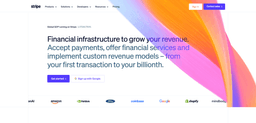 Stripe to platforma płatnicza, która obsługuje miliony firm na całym świecie, i jej landing page odzwierciedla to doświadczenie. Strona otwiera się odważnym, ale spokojnym nagłówkiem na gradientowym tle, po którym następują logotypy takich gigantów jak Amazon, Google i Shopify. Układ jest przejrzysty, typografia czytelna, a biel i przestrzeń dają poczucie profesjonalizmu i bezpieczeństwa. Stripe prezentuje konkretne dane i mockupy dashboardu, dzięki czemu potencjalny klient może sobie wyobrazić, jak produkt wygląda w użyciu, a to jedno z najskuteczniejszych narzędzi budowania zaufania w SaaS.