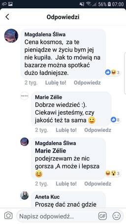 Osoby odpowiedzialne za fanpage udzielają zazwyczaj wzorcowych odpowiedzi. Jednak tym razem coś poszło nie tak. Z klientki jawnie zakpiono i wyśmiano jej porównanie ubrań marki do odzieży dostępnej na bazarze. Nie są to wprawdzie porównania godne Gościńca Grafa, ale prześmiewczy ton jest wyraźnie wyczuwalny.